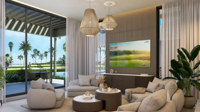 Esta villa no es simplemente una propiedad; es una inversión en bienestar y sofisticación. Cada detalle ha sido cuidadosamente seleccionado para ofrecer un entorno donde el tiempo se vive con intensidad y elegancia. Los espacios abiertos y fluidos borran los límites entre el interior y el exterior, invitando a los residentes a sumergirse en el paisaje caribeño. En el primer nivel, la piscina infinita actúa como el corazón de la villa, conectando la sala de estar, el comedor gourmet y las terrazas multiusos, todas con vistas panorámicas al campo de golf. El jacuzzi, integrado en este entorno, ofrece un refugio de relajación bajo el cielo caribeño.