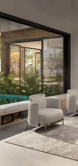 Villa Palmita 8 es una obra maestra de equilibrio y funcionalidad, diseñada a partir de dos ejes transversales que se cruzan en el corazón de la propiedad, generando una circulación horizontal fluida y envolvente. Esta disposición arquitectónica permite una transición armónica entre la vida diurna y nocturna, conectando cada espacio con intención y ritmo natural.